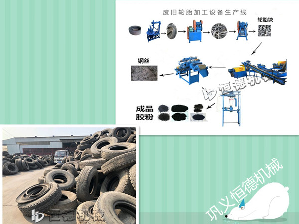 鞏義恒德廢舊輪胎的粉碎處理方法,包括:(1)輪胎切割小三樣:輪圈切圈機、切塊機、切條機;(2)輸送設備將輪胎塊自動輸送至磨粉機;(3)橡膠磨粉機:將膠粒粉碎至粉狀級別術,(4)從橡膠鋼絲混合物中分選出有價值的鋼絲與橡膠粉;(5)篩選機:將成品膠粒規(guī)格分離;(6)除塵設備:空氣凈化系統(tǒng)和脈沖除塵系統(tǒng)用于粉塵回收。鞏義市恒德機械設備有限公司輪胎粉碎設備采用自動化處理方法,采用綠色節(jié)能工藝設施。